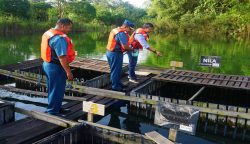 Dukung Program Ketahanan Pangan, Lanal Sangatta dan KPC Kembangkan Budidaya Ikan di Telaga Bekas Tambang