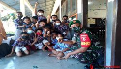 Babinsa Koramil 0909-03/Muara Wahau Amankan Kegiatan Vaksinasi Anak di Rantau Panjang